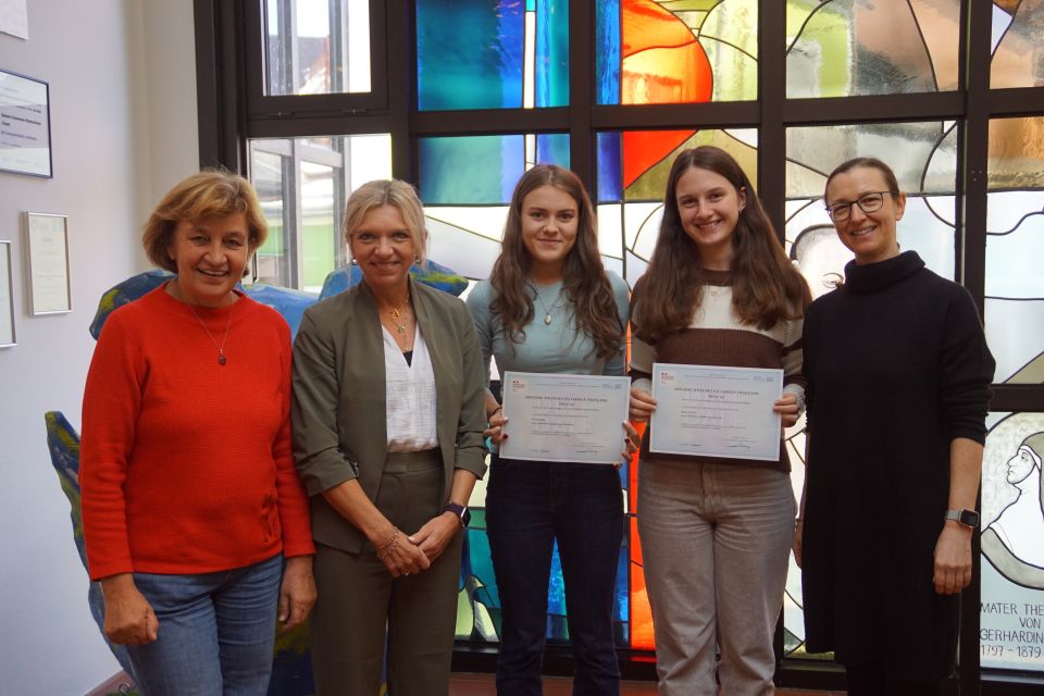 Die stellvertretende Schulleiterin Sandra Wagner, die Fachbetreuerin Karolin Heil und die begleitende Fachlehrerin Regina Rückerl freuten sich über das hervorragende Ergebnis und gratulierten den Schülerinnen zu ihrem Erfolg.