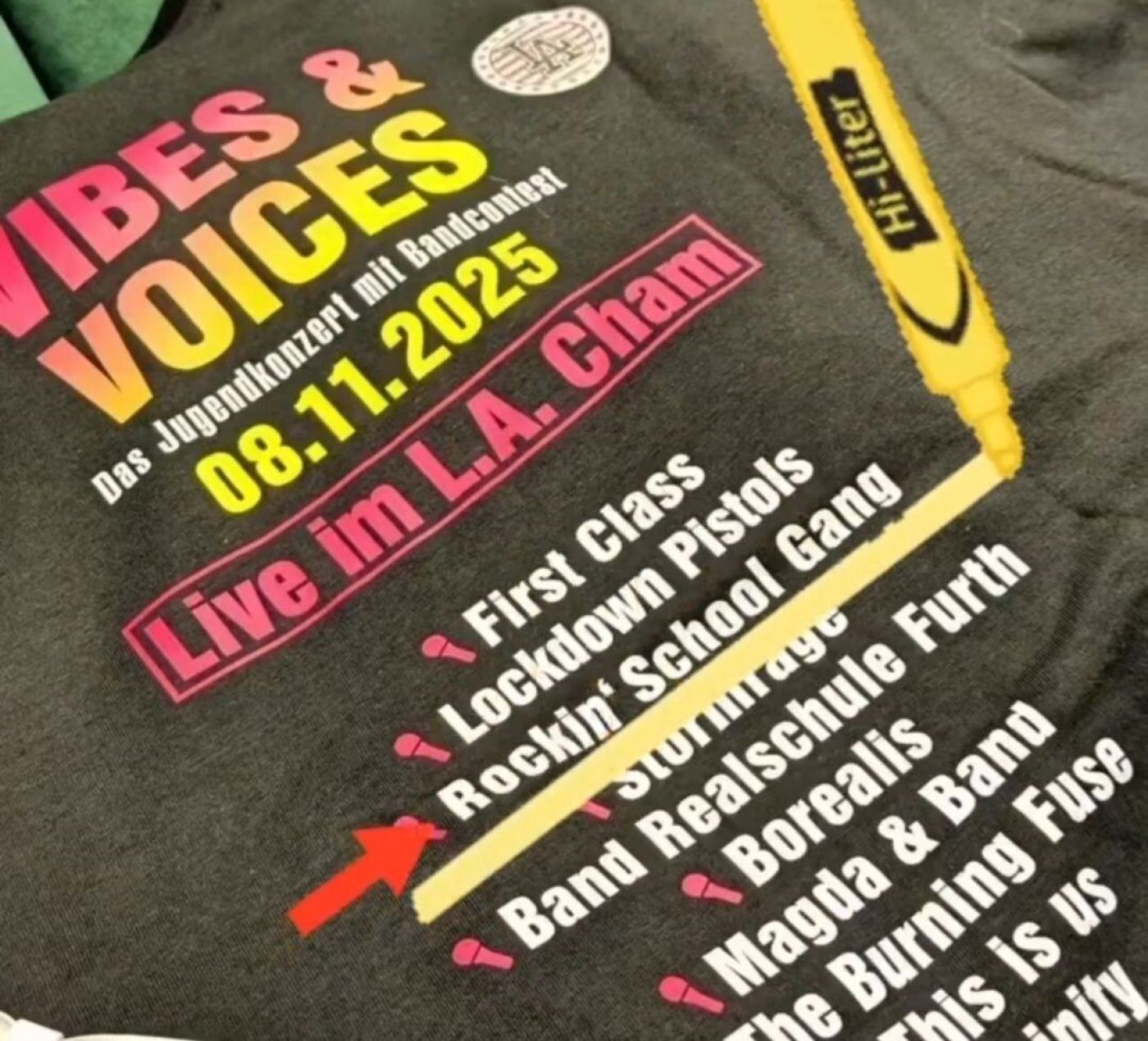 Am Samstag, den 08.11.2025, steht unsere Rockin’ School Gang beim großen Jugendkonzert mit Bandcontest Vibes & Voices auf der Bühne!