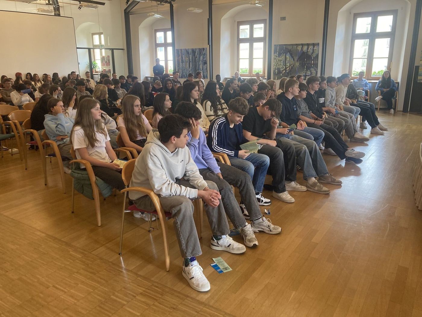 „Ich bin mir bewusst, dass ich eine Krankheit habe: Alkoholismus, bei dem Körper, Geist und Seele geschädigt werden.“ Mit diesen Worten eröffnete Hans, Mitglied der Anonymen Alkoholiker, gemeinsam mit seinem Kollegen Bernd eine Präventionsveranstaltung des Jugendrats der Stadt Cham für die 9. Klassen des Robert-Schuman-Gymnasiums. Ziel war es, die Zuhörer eindrücklich für die Gefahren des Alkoholkonsums zu sensibilisieren. Die beiden Referenten berichteten offen über ihre persönlichen Lebenswege: Von den ersten Erfahrungen mit Alkohol im Jugendalter über die zerstörerischen Folgen bis hin zum Neuanfang mit Hilfe der Anonymen Alkoholiker. Ihre Geschichten machten deutlich, wie schnell Alkohol zur Sucht führen kann – mit gravierenden Konsequenzen für Familie, Beruf und Gesundheit.
