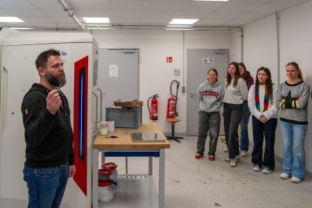 Anschließend brachte Professor Tim Weber den Schülerinnen und Schülern Grundlagen zur KI näher, die in einem interessanten und kurzweiligen Vortrag dargestellt wurden. Abschließend durften die Schülerinnen und Schüler in zwei Gruppen eine Laborführung mit Schwerpunkt auf 3-D-Druck und ein KI-Planspiel mitmachen.