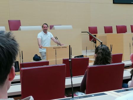 Ein Highlight war das Gespräch mit Frau Fröba, der Leiterin des Besucherdienstes, über ihre Arbeit bei der Planung von Auslandsreisen des Ministerpräsidenten. Sie schilderte eindrücklich, wie sehr der Austausch mit den internationalen Vertretungen, etwa in der Ukraine, auch für die Mitarbeiter belastend sein kann. Im Dialog mit tschechischen Austauschschülern und dem tschechischen Generalkonsul über die Unterschiede im Schulsystem erfuhren wir, dass an tschechische Schulen mehr gelernt werden muss, während es an deutschen Schulen zwar seltenere, aber dafür anspruchsvollere Prüfungen gäbe.