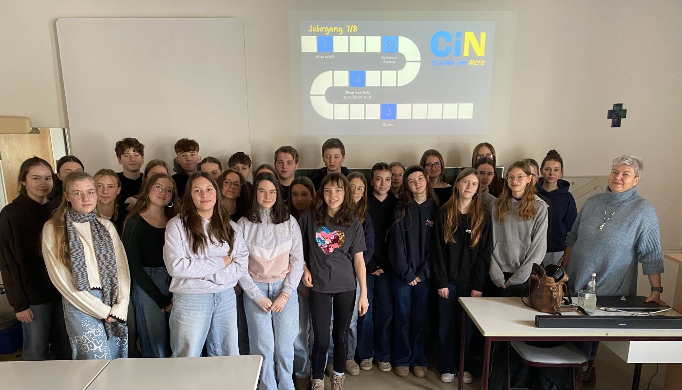 Im Rahmen des Programms „Alltagskompetenzen – Schule fürs Leben“ besuchte Birgit Zwicknagel das Robert-Schuman-Gymnasium, um mit den Schülerinnen und Schülern der 8. Jahrgangsstufe das Projekt „Clever ins Netz“ durchzuführen.