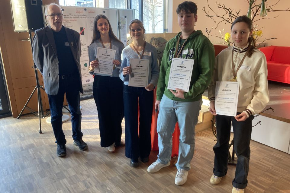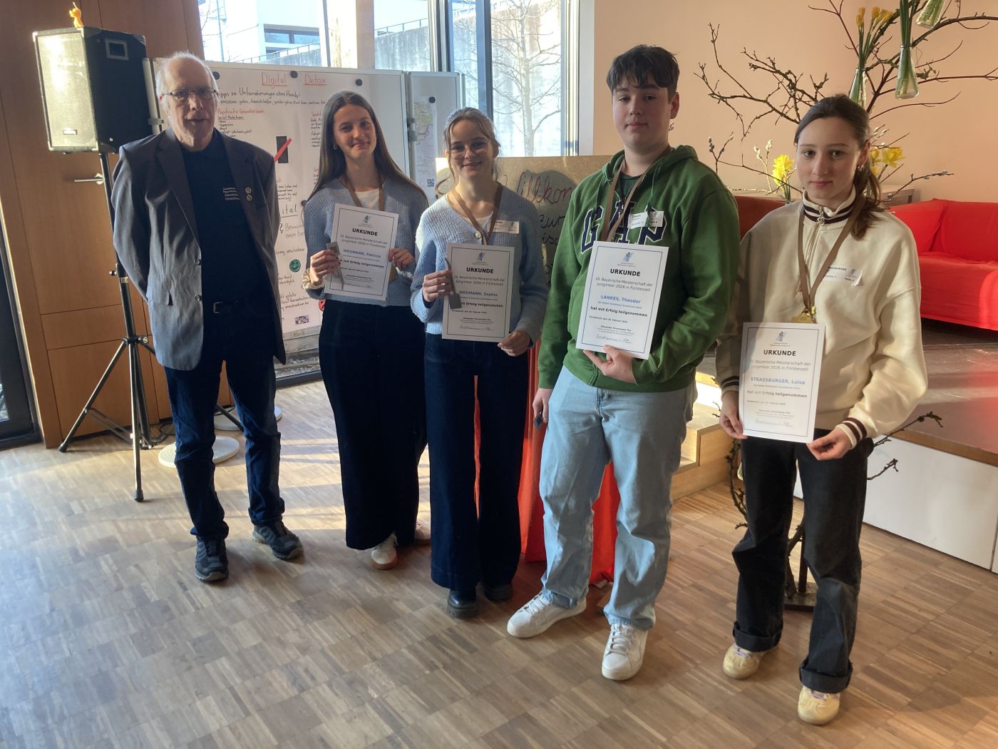 Unter den acht teilnehmenden Gruppen war auch ein Quartett des Robert-Schuman-Gymnasium vertreten: Theodor Lankes, Luisa Straßburger sowie Patricia und Sophia Wegmann stellten sich dem Wettbewerb. Die Prüfung bestand aus einem anspruchsvollen Theorietest sowie einem vielseitigen praktischen Teil. Auch wenn es für das junge RSG-Team in diesem Jahr nicht für die Spitzenplätze reichte, war die Veranstaltung ein voller Erfolg. Trotz der Herausforderungen hatten alle viel Spaß und konnten ihr Wissen über die faszinierende Welt der Bienen weiter vertiefen. Die Schumanisten sammelten zahlreiche wertvolle Erfahrungen, die ihnen bei künftigen Wettbewerben zugutekommen werden. Bei der Siegerehrung gratulierte ihnen Organisator Alexander Hirschmann-Titz, Obmann für Nachwuchs, Aus- und Weiterbildung beim Landesverband Bayerischer Imker, zu ihren Leistungen und ermutigte sie, auch weiterhin ihre Leidenschaft für die Imkerei zu pflegen.